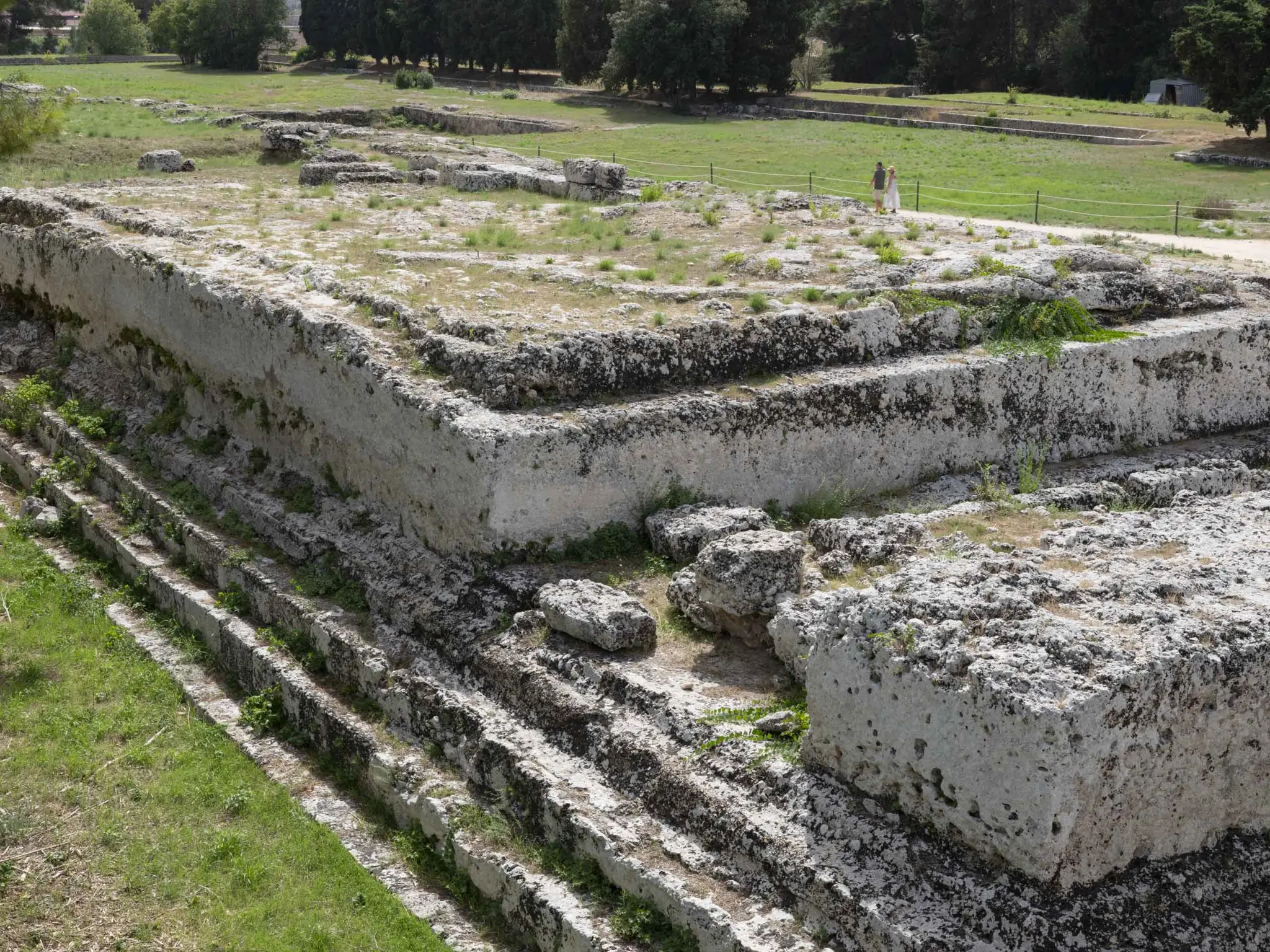 Ritornando verso l’entrata, bisogna soffermarsi sull’anfiteatro di età romana (I sec. d. C.): colpiscono le dimensioni eccezionali (140 x 119 metri) più che la conservazione dell’alzato. Infine, sulla destra, si può osservare quel che rimane l’Altare di Ierone II, l’ultimo tiranno di Siracusa prima della disfatta contro i Romani. Si conserva il lungo basamento di questo altare, al quale si accedeva da due ingressi collocati alle testate dove erano collocati dei telamoni. Se è corretta l’identificazione con l’ara di Zeus Eleutherios descritta da Diodoro Siculo, qui si sacrificavano 450 tori durante la festa dedicata al dio.