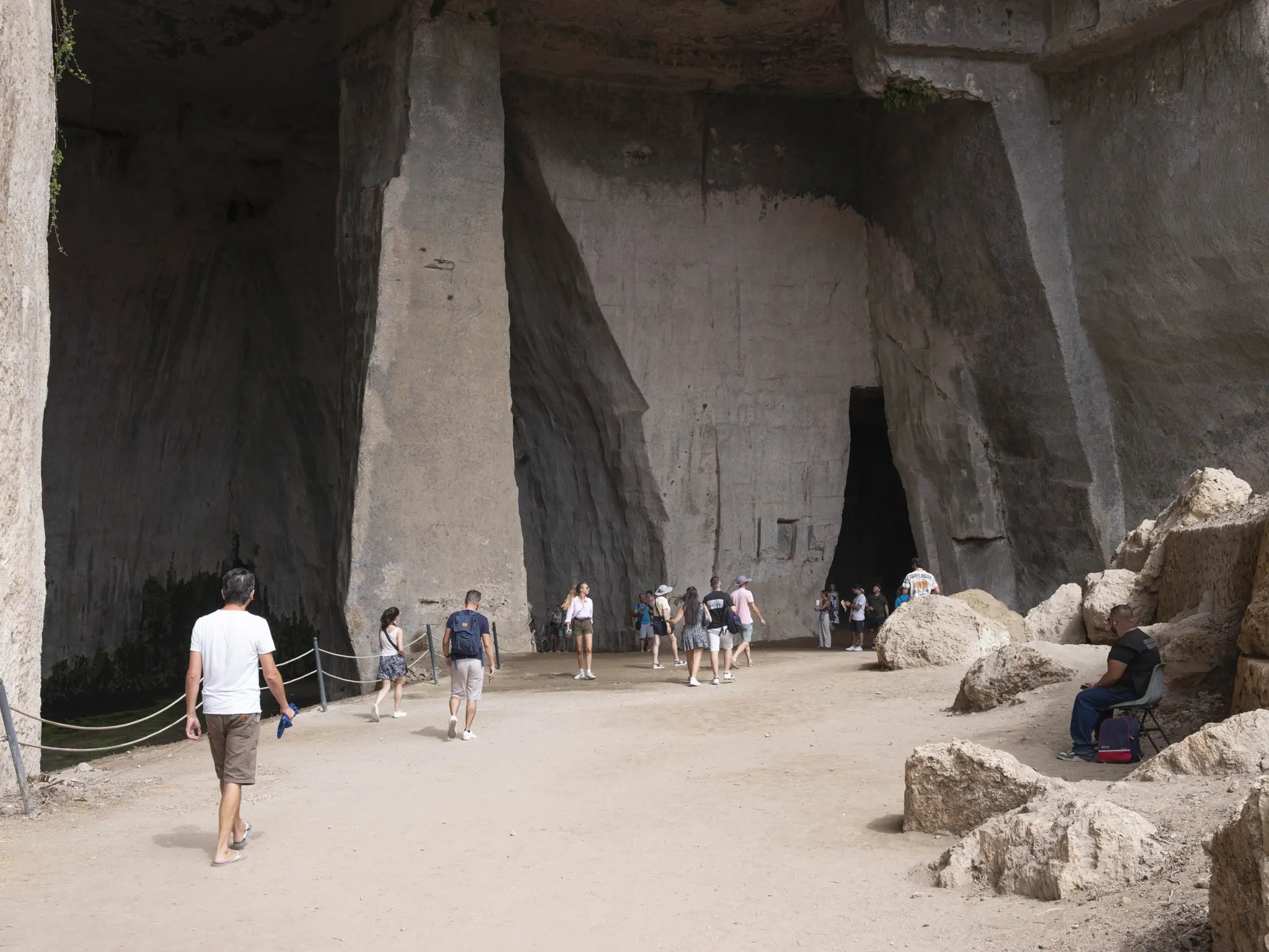 Il percorso prosegue inoltrandosi nello straordinario scorcio di paesaggio offerto dalle latomie del Paradiso. Qui si trova l’Orecchio di Dionisio, così nominato da Caravaggio, che lo visita nel 1608 insieme all’erudito siracusano Vincenzo Mirabella. Vedendo il carcere scavato nella roccia che il tiranno siracusano aveva costruito, il grande pittore lombardo avrebbe esclamato: