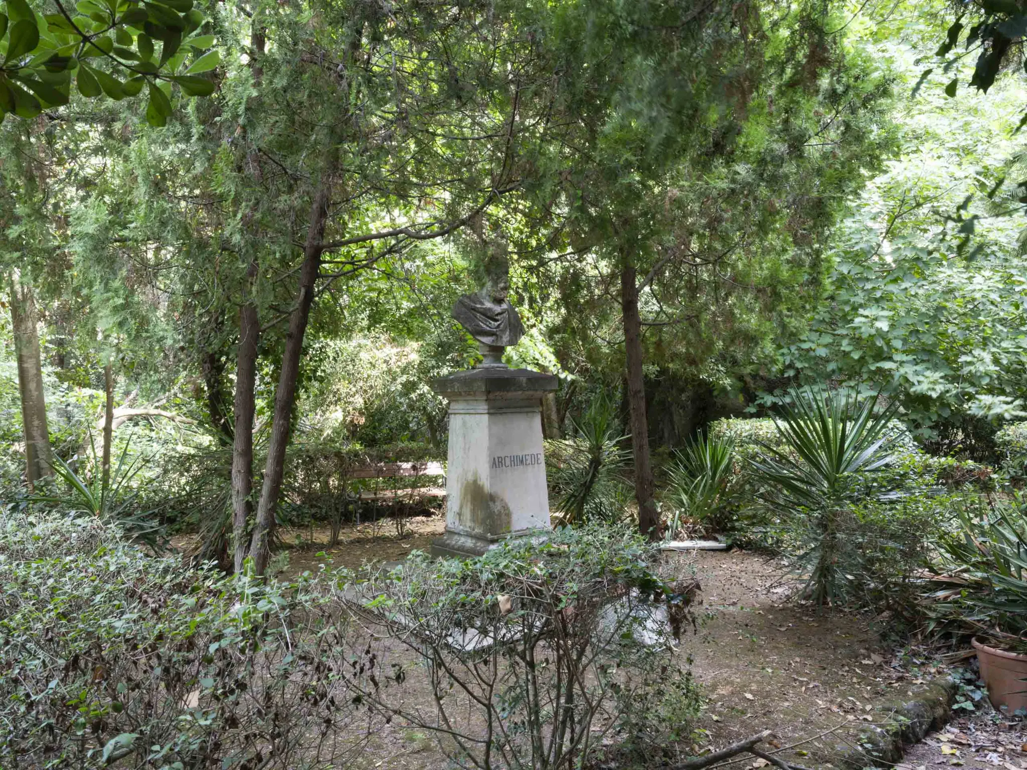 Ci si può anche imbattere in un busto di Archimede, realizzato nel 1886 dallo scultore Luciano Campisi, o in una piramide in memoria di Giuseppe Mazzini, commissionata dalla Società Operaia, sempre intitolata all’inventore siracusano.